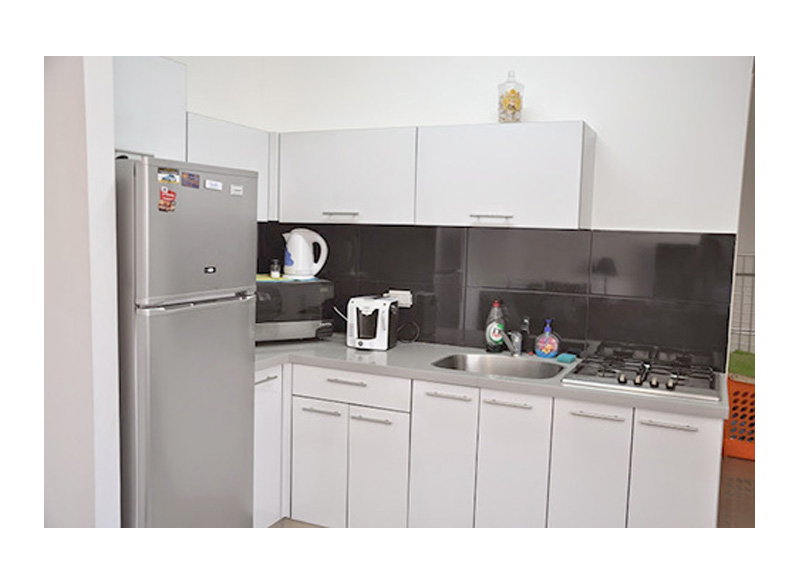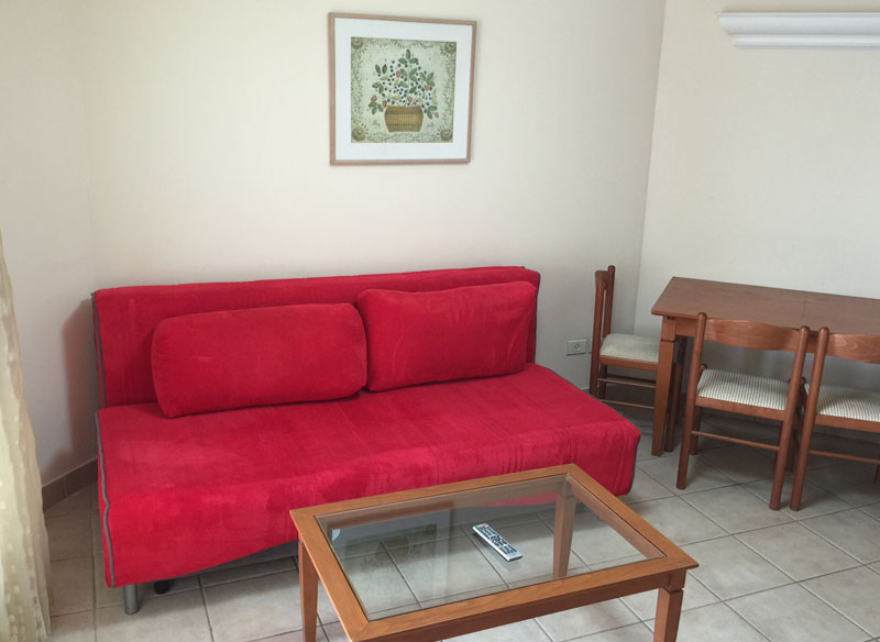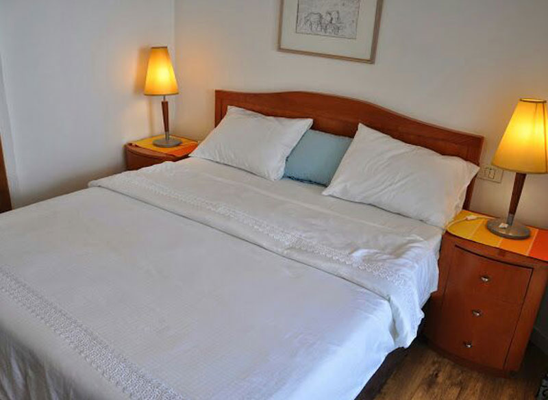 В квартире, благодаря полной изолированности комнат, могут разместиться 2 семейные пары, приехавшие отдохнуть компанией. Есть полноценная кухня и выход на крышу с видом на пляж.